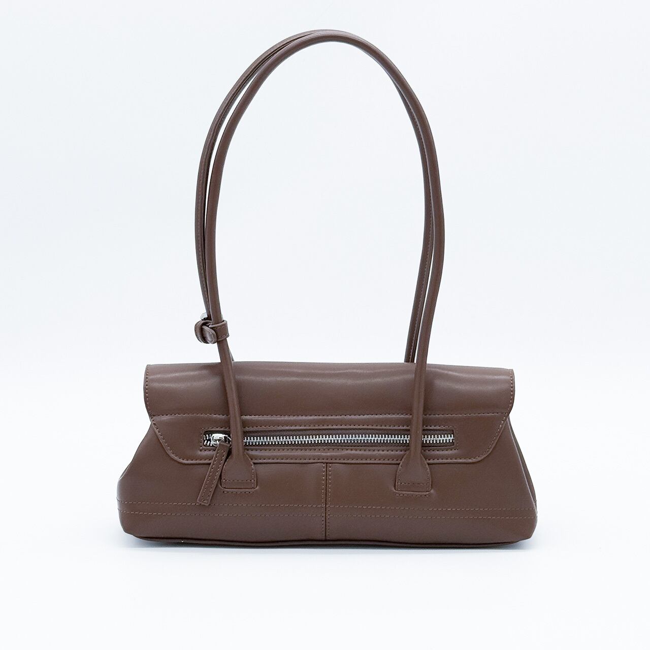 横長でトレンド感あふれるシルエットでコーディネートを選ばず使えるアイテム。ミニマルなデザインながら、内側は3つの仕切りと豊富なポケットで構成されており、リップやイヤホンなどの小物もすっきりと整理できます。