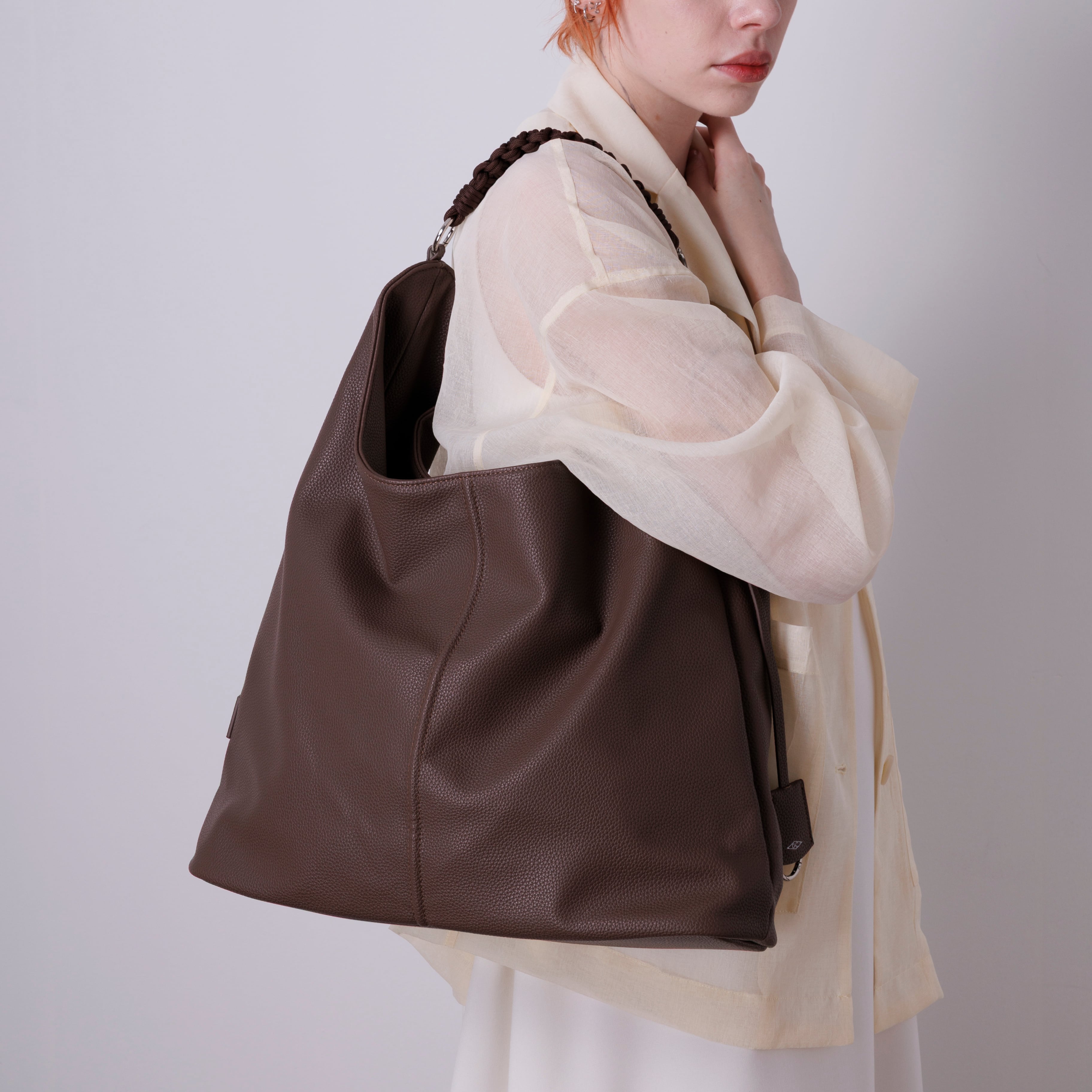編み込みハンドルがアクセントになったホーボーバッグ