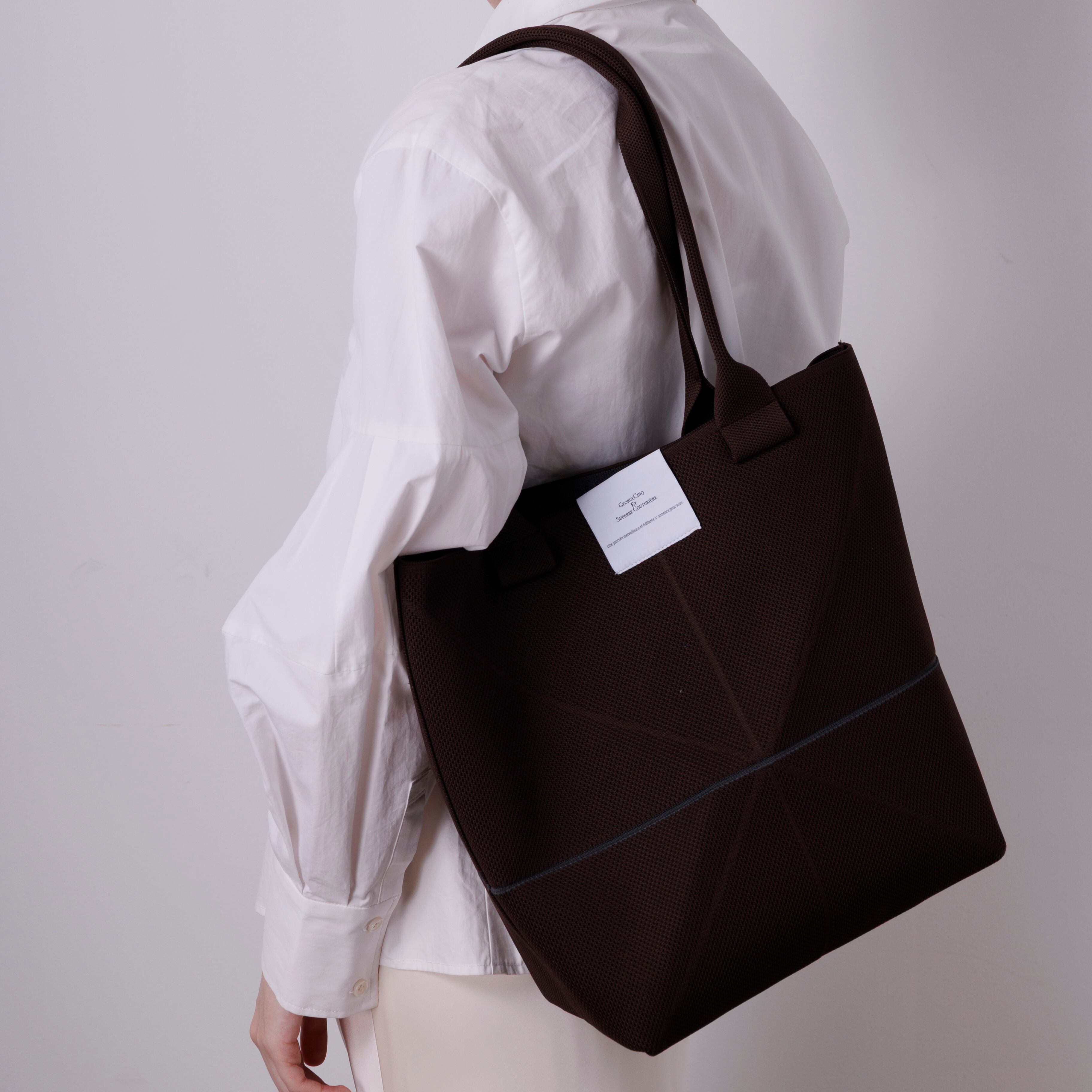 日本の「折り紙」からインスピレーションを得た、直線的なカッティングが印象的なフォールドバッグ。